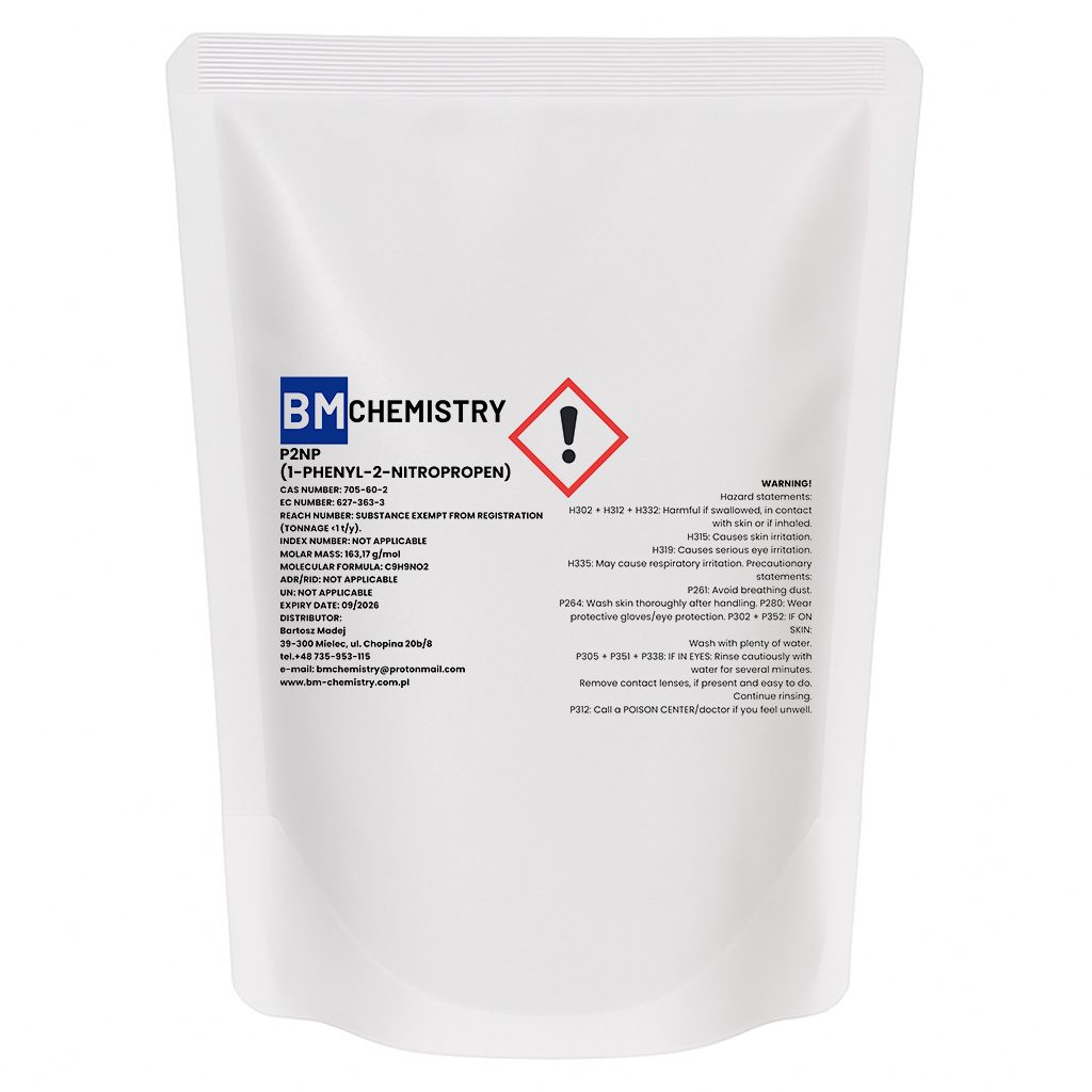 Phenyl 2 nitropropene also known as P2NP or phenylonitropropen is a high quality aromatic nitro compound with the molecular formula C9H9NO2 and CAS number 705-60-2 It is a yellow crystalline powder with characteristic appearance sparingly soluble in water and soluble in many organic solvents widely used as a chemical intermediate